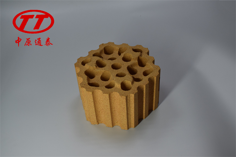 格子磚是目前被世界煉鐵界廣泛認同和接受的一種熱交換能力強、蓄熱麵積大、通氣順暢、阻力小等諸多熱工特性的載熱蓄熱體。格子磚是一種傳熱介質,主要用在熱風爐蓄熱室中上部,起蓄熱作用。 在把冷風加熱成熱風的過程中,起著極其重要的作用。